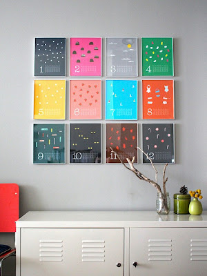 Todo un año por delante. Se merece un lugar principal en la casa, ¿no? Pues por eso es una buena idea enmarcar mes a mes y crear una composición - calendario como el de la imagen. Digo como la de la imagen, pero no igual, porque esta concretamente está agotada, pero seguro que encontramos, o podemos fabricar con un poco de imaginación, un calendario de este tipo en el que no sea necesario arrancar cada hoja una vez pase el mes, sino que las elevamos a la categoría de arte.